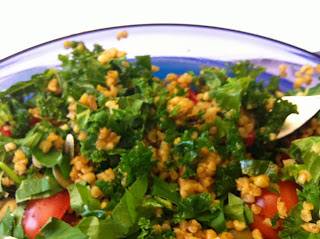 Wer noch auf den Mixer oder die Lust auf Smoothies wartet, dem empfehle ich den Buchweizen-Grünkohlsalat: